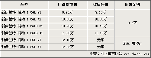 伊兰特悦动最高降9千元 1.8L车型需预订