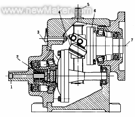 弹簧加载圆盘无级变速机构 图中输入轴 7 与驱动盘 6 为一体作主动件,用摩擦力通过双圆锥滚轮 4 带动从动盘 3 和输出轴 1 。为...