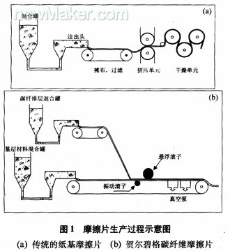 1 两种磨擦材料 传统的湿式磨擦材料的制造是通过纸桨磨擦材料的配料混合制成。这种用传统工艺手段制成的纸基磨擦樯料在高载荷...