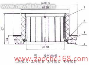 1 汽车橡胶轴承的关键部位及产品技术要求 产品外观质量好,胶边少。图 1 为汽车橡胶轴承的产品结构简图,产品要求骨架位置正确...