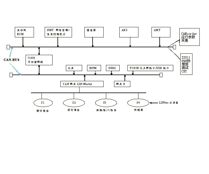 实现LIN-BUS传感器、电气控制系统和CAN-BUS系统的互联。并遵从J1939协议。