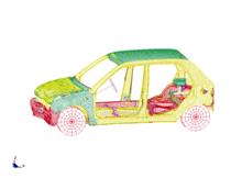 在建立整车仿真模型时,因涉及的零部件较多,故如何建立这些部件的数学模型和确定相应的结构参数,从而使模型的碰撞特性与实际车辆碰撞结果相吻合不但十分复杂,而且工作量很大。由于碰撞过程中,人和车的运动规律不同,再加上激烈碰撞时车身发生大变形并引起仪表板、前围板等零部件侵入乘客室内,减少了人体与室内物体的距离,也使问题求解复杂化。所以,汽车碰撞的计算机模拟研究宜用有限元方法研究汽车碰撞过程中车身变形及动态响应;若条件具备可进行人体在多种碰撞条件下响应的研究。
