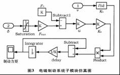 传感器将轮速等信号传给电控单元,然后由电控单元输出PWM控制信号,调节制动力矩。可以认为电磁作动系统为一阶非线性系统