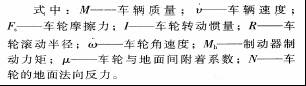 为了研究方便,采用单轮模型(图4),忽略侧向风、车轮滚动阻力以及制动过程的振动和法向载荷的变化等影响。