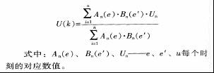 采用单点模糊化、乘积推理和重心法清晰化所得的k时刻的模糊控制器的输出结果为