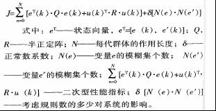 个体是模糊控制器参数的编码,个体目标函数用来估价该控制器性能,进而求出个体的适值,它是种群进化的向导,是调整控制器参数的依据。控制器性能应该是系统输出响应(过渡过程、稳态精度)和输出能量的综合指标。为了对模糊控制进行优化,选取如下性能指标