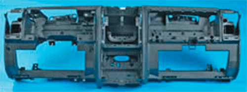 ● Mercedes-Benz M、R和GL级汽车中的仪表板骨架。这一由Delphi Corp生产的仪表板骨架采用30%长玻纤PP注射成型。所用材料来自于SABIC Europe(SABIC在美国的注册公司为RheTech,生产相似的产品)的13mm StaMax粒料。Delphi公司用这种材料代替了原来的SMA、PC或者PC/ABS。该部件壁厚为1.8mm,安全气囊门的壁厚甚至更薄。