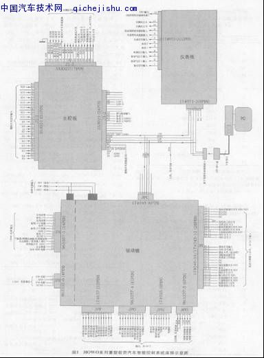 HOWO重型载货汽车智能电控系统由主控板、驱动板和仪表板组成,连接示意图如图1所示,其主控板、驱动板和仪表板均为独立模块。