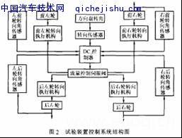 为提高控制精度,4个转向轮上均安装非接触式霍尔效应传感器,通过传感器把各个轮的实际转角反馈给控制器,控制器再经过计算、分析,重新发出指令信号,纠正希望转角与实际转角的偏差。整个系统形成闭环回路,满足了高精度的要求。