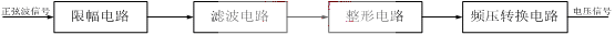 信号的处理过程为(1)通过限幅电路。由于车轮的转速越快,正弦波信号的幅值越大。所以通过两个稳压二极管将信号的幅值限制到正负5幅以内。(2)通过滤波电路。由于汽车在运行的时候会产生很大的高频干扰信号,因此采用二阶带反馈的有源滤波器,去除高频干扰信号。(3)通过整形电路,把正弦波信号转换成方波信号。(4)最后通过频压转换电路。转换过程如图二所示。