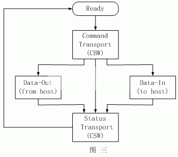 USB 组织现在定义了Mass Storage 协议传输的两个规范,即:1. USB Mass Storage Class Control/Bulk/Interrupt (CBI) Transport 2. USB Mass Storage Class Bulk-Only Transport。但是CBI不能用于高速设备,所以在我们的这个系统中选用第二种传输方式Mass Storage Class Bulk-Only。