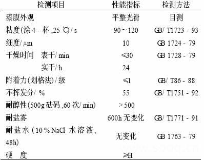 表5 面漆性能指标