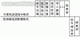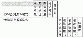 EMS产品提供标准的通讯协议,使用者可以方便的编写计算机和RFID控制器之间的通讯程序。图2是计算机通过控制器从载码体中读取一个数据块的命令格式以及控制器返回数据的格式。在实际使用中,很多情况下不必读取标签中的全部数据,可根据需要,相关工位只读取相关的一部分信息。这样能有效的缩短了读写字节的长度。相应地减少读写时间。