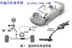 叠加转向系统是指在方向盘转过的角度上,能再叠加一个额外的转动角度。叠加转向系统的这种功能对于G CC系统的发展有无限的潜力。该系统使用嵌在转向柱内的电动机械作为执行机构。图1所示的就是电动叠加转向系统的工作原理。
