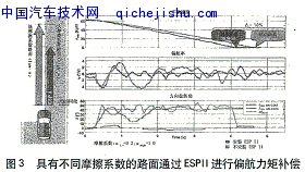 如果车轮两侧的路面具有不同摩擦系数。当车辆进行制动时,具有集成功能的底盘子系统具有很大的优点,这也是特别具有服力的例子。如果车辆没有安装电子制动系统,车辆进行制动时,在车辆两边的轮子,上会建立起不相等的制动力而产生偏航力矩,迫使车辆朝向具有大的地面摩擦系数的一侧,当车轮被完全抱死后,维持车辆运动的侧向力就会消失,驾驶员就无法再对车辆进行有效的控制。
