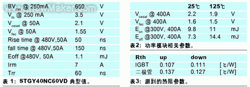 ·主动开关是STGY40NC60VD,它是由一个 600V、50A快速IGBT和一个反并联的二极管组装在一个新的TO Max247T M塑料封装内构成的。 这些器件的选择条件是室温, 插入方程式1
