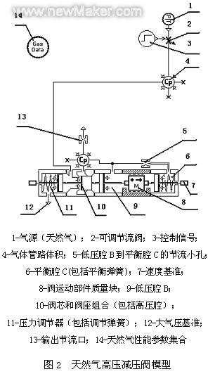 此模型包括AMESim中的气压、机械模型库中的子模型。依据天然气高压减压阀的具体的物理结构、工作原理、研究时关心的现象等选择尽量简化的数学模型。模型具体情况介绍如下:
