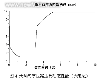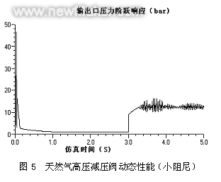 实际上,天然气高压减压阀在静态特性曲线上的表现,要陡峭的多,在模型中因为忽略了相当多的实际的影响因素,比如阀内的泄漏等,所以模型在特性曲线上要理想的多;在动态特性上,出现较大的超调,因为在模型当中对一些小的扰动忽略掉,只考虑了比较简单的库仑摩擦,故而在曲线的振动上与实际有些区别,但不大。