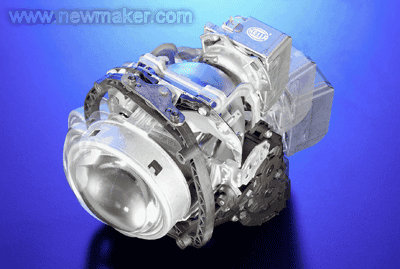 在双氙气大灯中,遮光罩游移在两个位置之间。毫秒之间,机械机构即带动它上下位移,分别发射出远光灯和近光灯。在VARILIS体系中,不同的灯光分布出自投射体系的氙气大灯:工作原理如同幻灯投影仪,只是在光线通路中,即光源和透镜之间,不是幻灯片,不是双氙气大灯中的遮光罩,而是一个可旋转圆柱体转轴。它表面有不同的形状,转到不同角度去适应城市,乡村,高速路状况。是否远光灯多余了呢?并非如此,驾驶者仍然可以选择使用远光灯,此时转轴即刻被转入某一特定位置,让充足的远光灯通透出去。