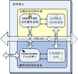 通过OSEK/VDX实时操作系统、硬件在环实时仿真、时间触发CAN以及无缝的自动代码生成等最新汽车电子软件技术的应用,以MPC500系列微处理器为控制核心,如图10所示,实现整个V形结构快速控制原型过程中软件核心的有机结合。开发出了符合OSEK/VDX标准的燃料电池城市客车控制平台,实现了对整车运行的管理与控制、基于CAN总线的各部件节点的协调控制、故障诊断和处理及数据监控记录等功能,并在燃料电池城市客车的实际测试中得到了检验。事实证明,这些新软件技术的使用能够有效地减低开发风险,缩短开发周期,提高产品可靠性与稳定性,消除系统中潜在的隐患。