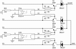 在每对三极管和二极管中串联限流电阻,可以保护三极管不会由于过流而击穿。同时,由于此限流电阻还有分压作用,使得瞬变二极管上的电压进一步降低,使瞬变二极管不易被击穿。