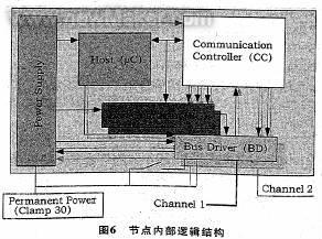 唤醒针对的是电源管理系统。有些节点在不工作时处于“节电”模式(power-savingmode),当再次投入工作时就需要“唤醒”该节点;单个节点可唤醒整个组群;主机可在通讯信道上传输唤醒模式(wakeup-pattern)。节点通过收发器进行唤醒:当节点的收发器接收到唤醒特征符(wakeup-symbol)后,对主机处理器和通讯控制器进行上电。
