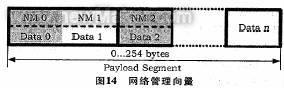 在静态时序部分,有效数据部分的头13个字节(DataO-Data12)通常用作网络管理向量(networkmanagementvector,简称NM)。在同一个簇内,所有的节点应具有相同长度的网络管理向量,仅仅用于在静态时序传输的数据帧,长度为8位,如图14所示。