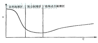 润滑油粘度η、转速U和负荷P是决定润滑状况的三个因素,它们之间的联系可用无因次参数C来表示:C=ηU/P,C和摩擦系数μ的关系示于图1,称为润滑状态过渡图或Stribeck曲线。在流体动力润滑区,液体膜的厚度足以将固体表面隔开(即油膜厚度h粗糙度δ);在边界润滑区,微凸体发生连续的接触,固体靠金属表面吸附的极性物质或反应膜润滑;介于两条线中间的为混合润滑区,摩擦系数μ随着C值减少迅速增加。对于混合润滑,迄今的研究并不充分。90年代后证实了混合润滑是以纳米量级的薄膜润滑(thin film lubrication)状态存在,以有序液体膜为特征,流体膜减薄到表面粗糙峰之间的间隙为润滑油分子尺度范围,即粗糙峰顶已出现边界膜。薄膜润滑的物理模型为:靠近表面的是吸附膜,不具有流体性质;处于润滑膜中间的是粘性流体膜,具有弹流润滑特征,介于粘性流体膜与吸附膜之间的有序液体膜,是由于液体分子在摩擦剪切过程中受表面能作用迫使分子有序排列而形成的。有序液体膜的有序度高于粘性液体膜,而低于靠近金属表面的吸附膜。当润滑膜厚减少到粘性液体膜完全消失时,润滑膜由有序液体膜和吸附膜为主。薄膜润滑伴随表面磨损,以接触疲劳和粘着机制为主要形式。如果液体膜更薄,则只有吸附膜存在时,为边界润滑,会出现微凸体间的直接接触。在油中加入油性剂如长链的醇胺和脂肪酸等,其极性基吸附在金属表面上,长链中的次甲基横向吸附,构成牢固的吸附膜,代替了金属的直接接触,减轻了摩擦或磨损。在负荷和温度更高的条件下,油性剂将失效,极压添加剂与金属反应,形成一些化合物较金属易于剪切,熔点较低,可以防止金属间的咬合从而保护金属表面。