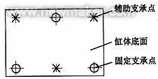 因此,缸体精加工时,采用何种定位方式将是保证顶面、缸孔与曲轴孔公共轴线相关精度的重要因素。国内外发动机制造厂及专用机床厂都在不断寻找新的定位方式,如在半精、精加工时采用底面相同三点(面积较小)再配以多点辅助支承来减少因工件变形和多次重复定位所产生的误差(见图3)。再一种目前广为采用的是利用精加工后的曲轴孔为缸体的主定位基准来保证所需的加工精度,这种定位方式消除了底面平面度和多次重复定位所产生的定位误差,有效地保证了顶面、缸孔与曲轴孔相关的精度要求。