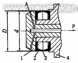 图5为可涨芯轴结构形式(二),填充物2具有可延伸性、耐腐蚀性,以防止冷却液和切屑进入涨套3内,此结构工作前直径D>d,以避免涨套3在插入曲轴孔时磨损。它的工作原理是:在可涨芯轴插入曲轴孔之前,精过滤的冷却液或压缩空气经孔A喷出将曲轴孔冲净,然后两芯轴插入曲轴孔内,再借助专用定位基准将缸体摆正,此时件1在油缸力P的作用下,使涨套3工作消除与件4和曲轴孔的间隙,使缸体略微抬起,此时涨套3的直径大于D。最后再辅以底面多点支承。