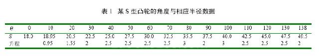 用大蜗轮转角来检测摩擦片的厚度时,影响最为重要的参数就是凸轮的形状参数,因为凸轮轮廓加工比较困难;其外形尺寸难于测量;且凸轮与制动蹄为线接触,易磨损。故不同的凸轮形状就有不同的结果。例如若使用一个S 型的凸轮,其角度与相应的半径数据如表1。则估计大蜗轮报警转角为75°。