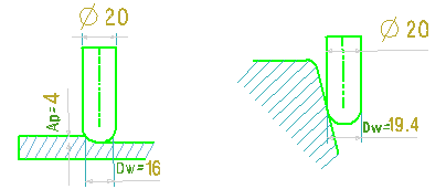 一般来说,刀具的直径不同于刀具的切削直径。平头刀的切削直径接近于刀具直径,这样在选择切削参数时,可参照刀具供应商提供的刀具手册;而对于在模具加工中常用的球头刀,则因加工深度和切削角度不同,使得刀具切削直径和刀具外径相差很大(见图2),当直径为20mm的球头刀切削深度为4mm时,刀具的切削直径只有16mm,为刀具外径的80%。