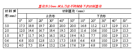 可根据不同的型腔采用不同的加工倾角,使倾角加工实现了较理想的切削直径,从而获得较佳的线速度(见下表);