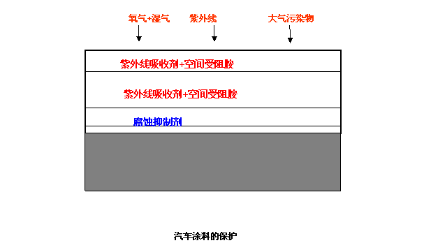 ·1-2%的紫外光吸收剂通常在面漆内已足够使其“紫外线不透明”,也就是紫外线不能穿透至较内部的漆膜和涂层。