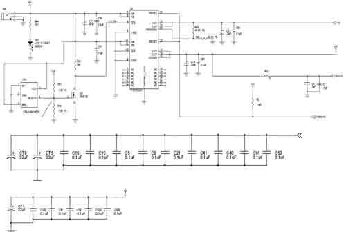 为了实现系统的控制功能,D/A转换电路中选用四路12位电压输出型DAC TLV5614,它具有灵活的四线串行接口,可以与TMS320 SPI、QSPI和Microwire串行口实现无缝连接。TLV5614的编程控制由16位串行字组成,即两位DAC地址、两个独立的DAC控制位和12位的DAC输入值。器件采用双电源供电:一组为串行接口使用的数字电源,即DVDD和DGND;另一组为输出缓冲器使用的模拟电源,即AVDD和AGND。两组电源相互独立且可为2.7~5.5V之间的任何值。双电源应用的好处是DAC使用5V电源工作,而DAC的数字部分使用2.7~5.5V电源,可以和多种接口连接。
