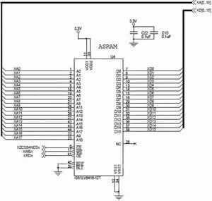 由于该控制系统需要存储大量的数据以备分析和利用,根据DSP与外部存储器之间的“零等待”原则,采用IS61LV6416-12T扩展F2812的外部存储器,IS61LV6416-12T为64K×16高速CMOS SRAM,3.3V供电,其与TMS320F2812的接口电路如图6所示。