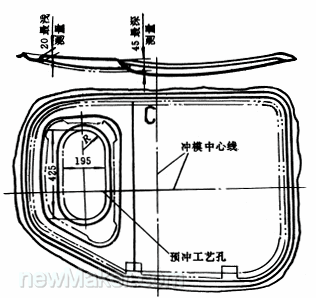 (3)用工艺孔定位。该工艺孔在拉延成型时冲出,由于操作麻烦,尽量少用。