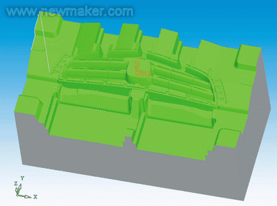 3轴粗加工:Cimatron NC 强大的粗加工程序及其超乎想像的高效加工策略提高了使用者的生产效率,精确的剩余毛坯模型始终贯穿在整个加工程序中,有效地减少了空切。程序自动创建进退刀方式,并且根据实际刀具载荷自由地调整进给速度。粗加工程序提供了多种加工策略,我们可以通过加工区域、边界曲线以及检查曲面来限制加工范围并且全面支持高速铣削。