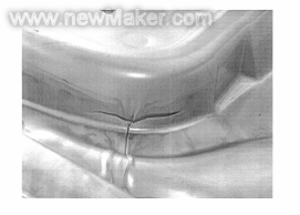 实际冲压结果图9、图10 是实际冲压零件照片。通过实冲,验证了计算机模拟冲压成形分析的准确性,从图中可以看出,下部两角出现破裂,与数值模拟结果比较接近。