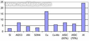 图2:不同材料的热膨胀系数(CTE)(ppm/K)