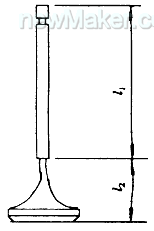 在实际工作中,特别是发动机设计之初,并不清楚气门机构真实的热状态,故难以精确给出气门体的温度分布规律。因此,除了参照同类机型的数值外,还可以采用近似估算方法。此方法是将气门的温度区简略分为两个,一个是高温区,即气门头部及杆身接合部L2;另一为低温区,即杆身部分L1,其气门体如图6所示。这样气门在承受最高热负荷时,整个气门的热膨胀量可按下式进行计算,并求得气门间隙Δ,计算方法如下: