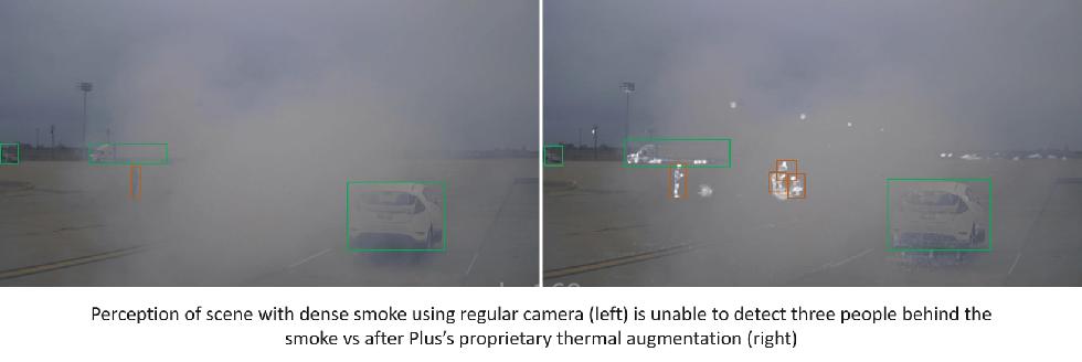 智加科技采用多模式传感器方法,并使用激光雷达、摄像头和雷达,为搭载自动驾驶技术的卡车提供360度全景视野。与传统卡车相比,当前系统可提供更高的安全性,但若添加热像仪,可增加另一层感知,这对于在低能见度和高对比度条件下的重型卡车十分有效。可能环境包括:夜间、阴影、黄昏或日出;阳光直射或大灯眩光;由于环境条件出现的雾或烟雾等恶劣场景。根据配置,热像仪可在250米的距离内检测到行人并进行分类,比典型前大灯的覆盖范围更远。热像仪还可以提供车辆周围的另一层感知,特别是当车辆倒车或被后方车辆超车时非常有效。