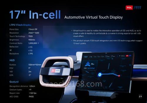 在车载显示领域,TCL华星也在开放Mini LED显示屏的同时,自主研发了一套虚拟触控系统。