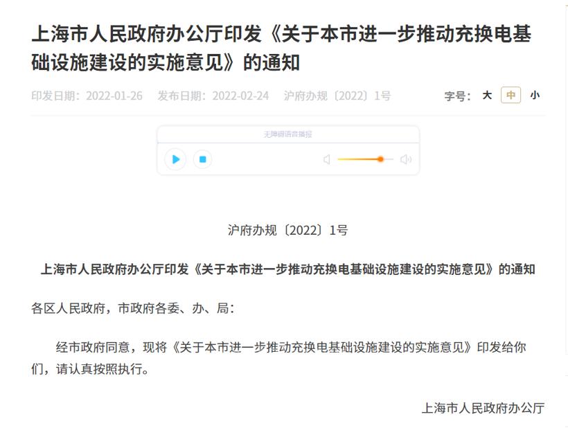 2月24日,上海市人民政府办公厅印发《关于本市进一步推动充换电基础设施建设的实施意见》(下称“《意见》”)的通知,上述《意见》自2022年3月1日起施行。
