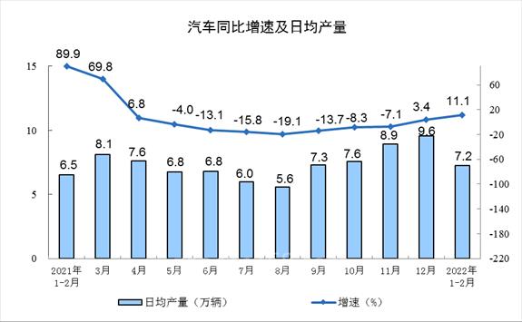 1-2月,41个大类行业中有38个行业增加值保持同比增长。其中,汽车制造业增长7.2%。