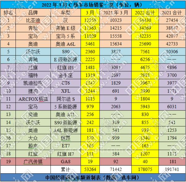 事实上,此轮疫情不仅打乱了地处吉林和上海两地车企的产销节奏,而且还扰乱了车市的竞争格局。以国产C级车市场为例,德系三强(华晨宝马、北京奔驰、一汽奥迪)旗下燃油版C级车,3月的销量同比均出现较大幅度的下跌;这让正常发挥的比亚迪汉轻松地拿下了单月的销量冠军。数据显示,3月,比亚迪汉、奔驰E级、宝马5系的销量分别为12359辆、11363辆、11029辆,分列冠亚季军;一季度的累计销量分别为34430辆、34169辆、42235辆。