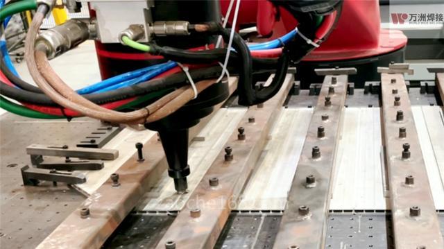 万洲焊接采用搅拌摩擦焊机器人和静轴肩技术,通过多次技术攻关,完美解决镁合金焊接问题,并成功应用于镁合金电池托盘的焊接,焊缝表面无飞边、接头强度高、产品变形小,为镁合金电池托盘批量制造打下坚实基础,为新能源汽车轻量化制造提供更多的解决方案。