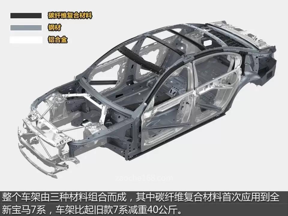而全新7系则是首款采用工业化生产的碳纤维增强复合材料(CFRP)与钢材和铝合金混合车身结构的车型,也开辟出了汽车轻量化设计上的一条新路。