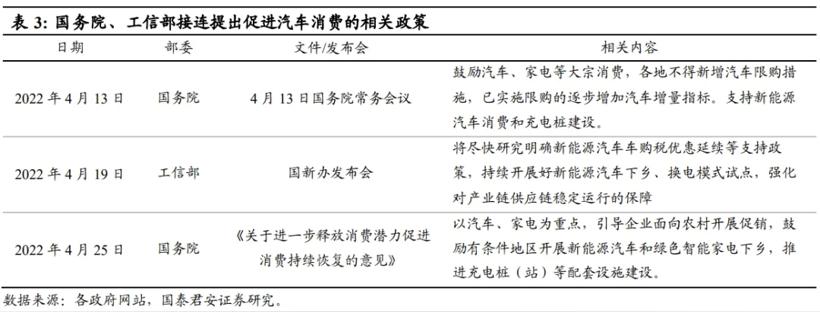 时间来到4月,国务院办公厅又印发了《关于进一步释放消费潜力促进消费持续恢复的意见》,指出要以汽车、家电为重点,引导企业面向农村开展促销,鼓励有条件的地区开展新能源汽车和绿色智能家电下乡,推进充电桩(站)等配套设施建设。
