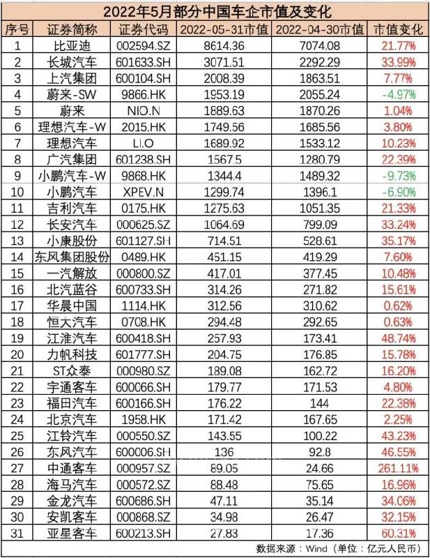 作为市场份额仅次于丰田集团的大众集团,其虽然在5月份市值环比增长12.24%,但还是被比亚迪反超。5月26日,大众汽车CEO迪斯表示,半导体供应已明显改善,预计大众集团的全球产量将在今年剩余时间内恢复。同时,迪斯认为,大众能够在2025年之前超越特斯拉,成为全球最大的电动汽车制造商。迪斯坦言,特斯拉确实有一些优势,“但如果他们要进一步提升,挑战性可能会更高。”